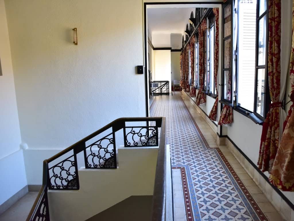 Bên cạnh dinh thự chính, khuôn viên rộng lớn được bao bọc bởi hàng cây giá tỵ xanh mát và cây sứ cổ thụ trăm năm tuổi, tạo nên một không gian thiên nhiên hài hòa và tràn đầy sức sống. Những bậc thang đá rêu phong tinh tế dẫn lối du khách qua từng góc khu vườn, mở ra những khung cảnh mới mẻ, nơi từng chứng kiến nhiều sự kiện lịch sử quan trọng.