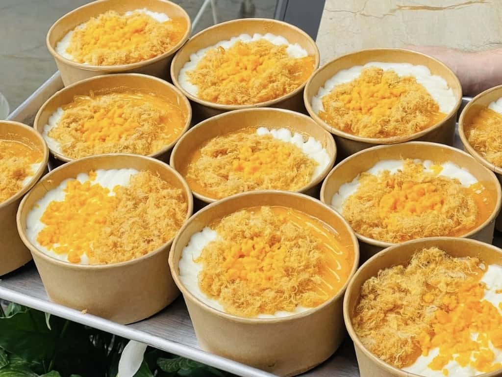 Món bánh nhỏ nhắn nhưng có hương vị đặc biệt, với lớp bánh mềm xốp, trứng muối bùi bùi, phô mai béo ngậy. Bạn có thể mua tại các tiệm nổi tiếng như Gốc Cột Điện hoặc Lê Lai.