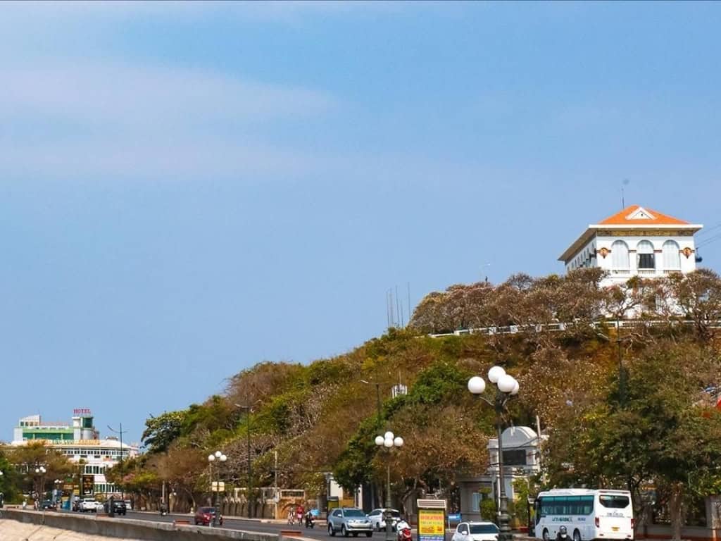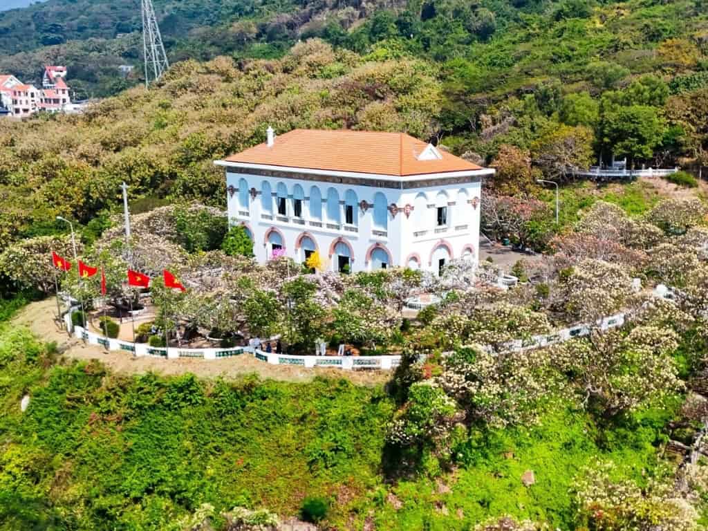 Còn nếu thích đi bộ và khám phá, bạn có thể chọn lối cầu thang 146 bậc dẫn thẳng lên Bạch Dinh. Dọc hai bên là hàng cây sứ lâu năm, khi vào mùa hoa nở, cả không gian như bừng sáng với sắc trắng tinh khôi, tỏa hương dịu nhẹ trong gió biển. Đây chính là góc “sống ảo” lý tưởng, nơi bạn có thể thỏa sức chụp những bức ảnh đẹp mê hồn, lưu giữ kỷ niệm trong chuyến tham quan.
