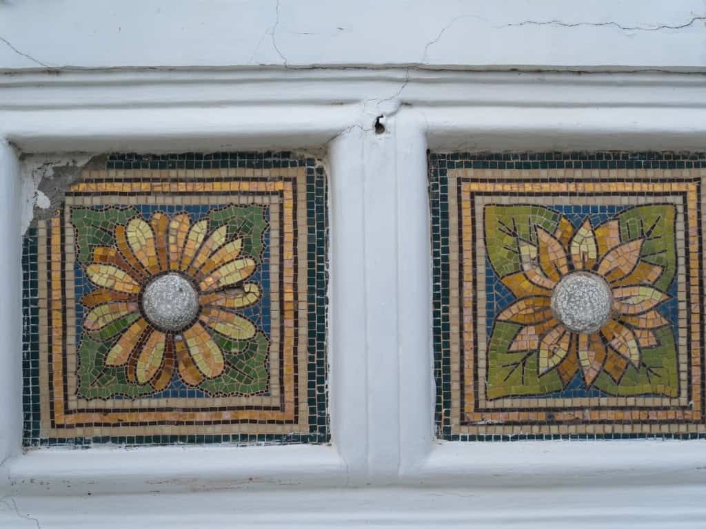 Hầu hết các chi tiết trang trí bên trong đều được chế tác từ sứ men cao cấp, mang phong cách nghệ thuật đặc trưng. Dọc theo tường là những họa tiết cá chép uốn lượn, chim muông xòe cánh, tạo nên không gian vừa cổ điển vừa tinh tế.