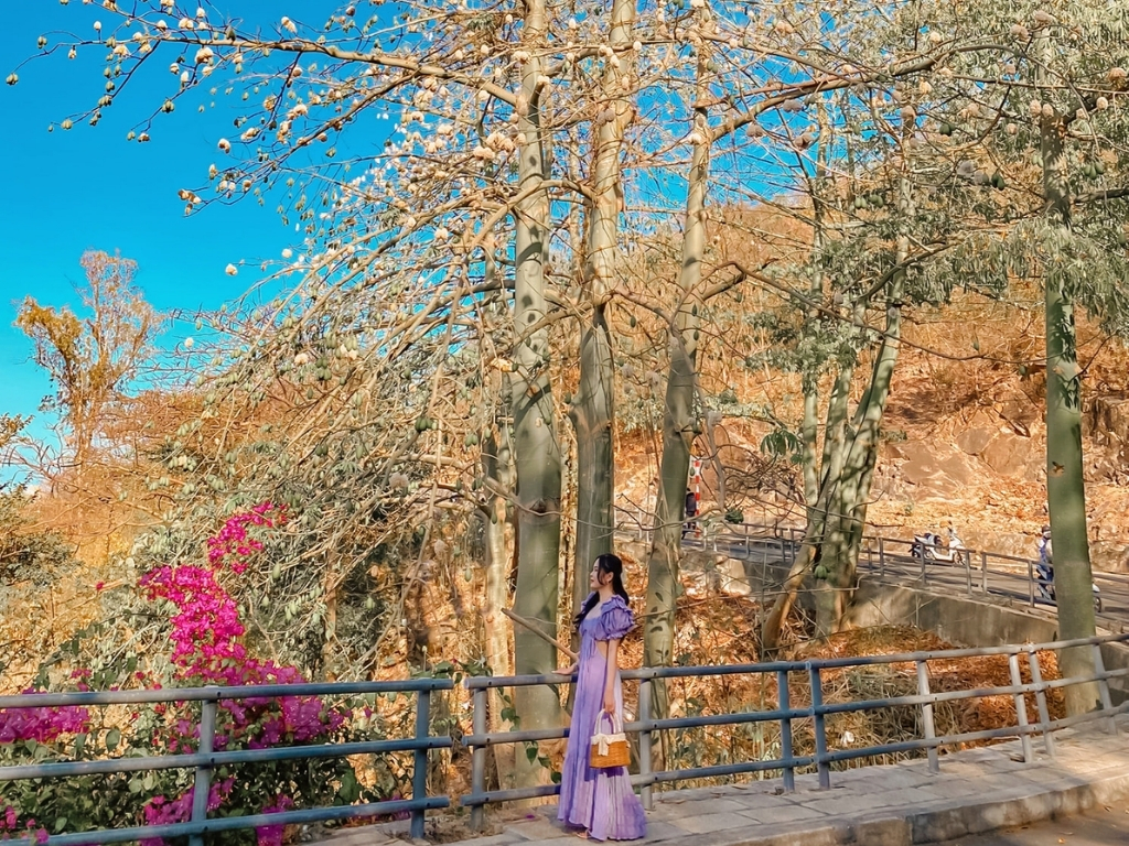 Không khó để lý giải tại sao con đường cây bông gòn lại trở thành điểm sống ảo yêu thích của các bạn trẻ. Màu trắng tinh khôi của hoa bông tạo thành phông nền tuyệt đẹp cho những bức ảnh đầy chất thơ. Đứng giữa khung cảnh lãng mạn, bạn sẽ có cảm giác như đang lạc bước vào một thước phim Hàn Quốc ấn tượng.