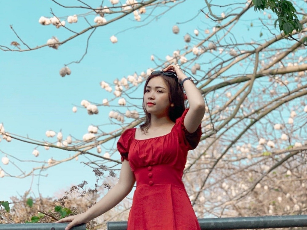 Mặc một chiếc váy xinh để check-in trên con đường bông gòn (Ảnh: Sưu tầm)