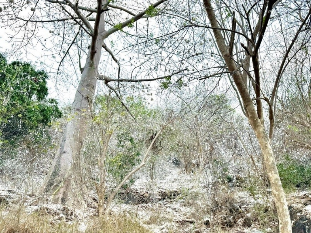 Con đường dẫn lên núi nhỏ trồng vô số những cây bông gòn trắng tinh khôi (Ảnh: Sưu tầm)