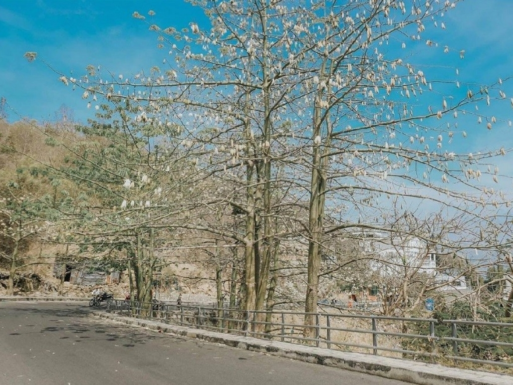 Mùa bông gòn nở, cả cung đường như khoác lên lớp áo bông mềm mại (Ảnh: Sưu tầm)