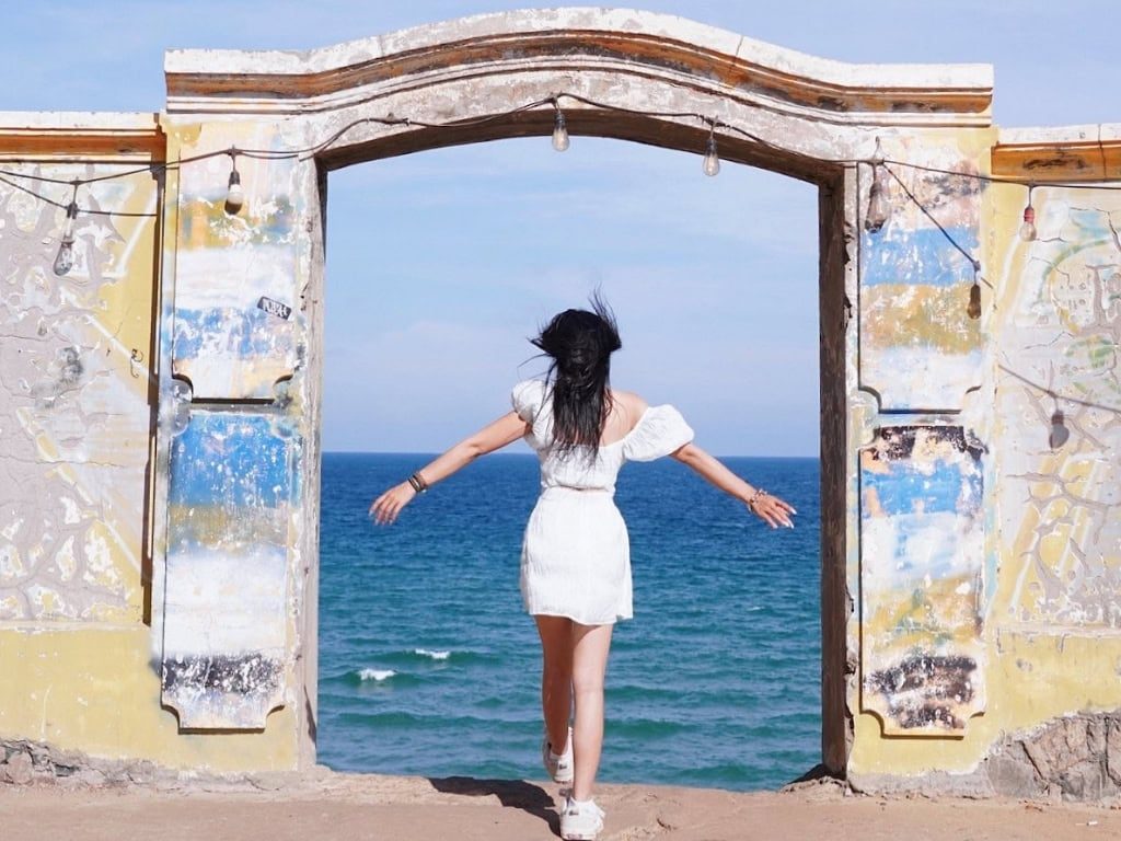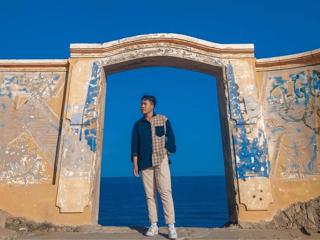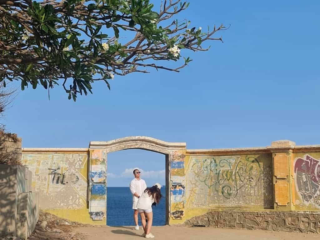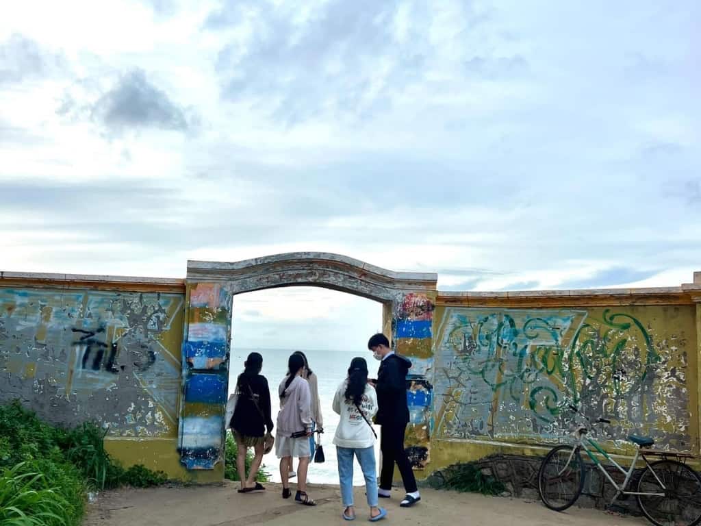 Với bức tường cũ được sơn màu vàng rực rỡ và cánh cổng bỏ ngỏ, nơi đây đem đến cho du khách cảm giác như đang bước chân vào một thế giới khác. Khi vượt qua cánh cổng này, xuất hiện trước mắt bạn là một bức tranh sơn thủy hữu tình độc đáo, với biển vây quanh núi, núi ôm lấy biển, tạo nên khung cảnh hùng vĩ và yên bình đến lạ thường.