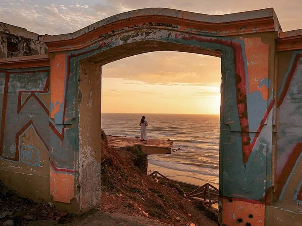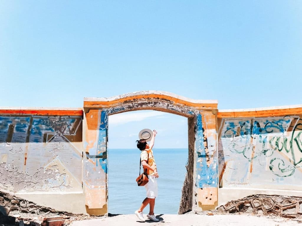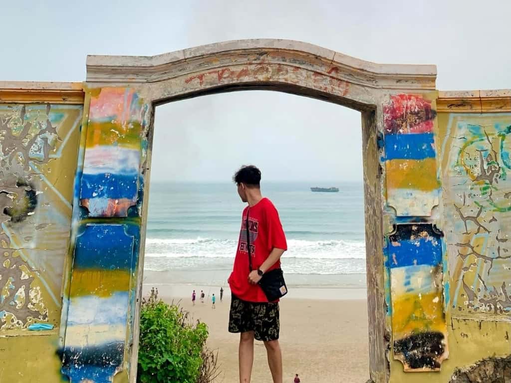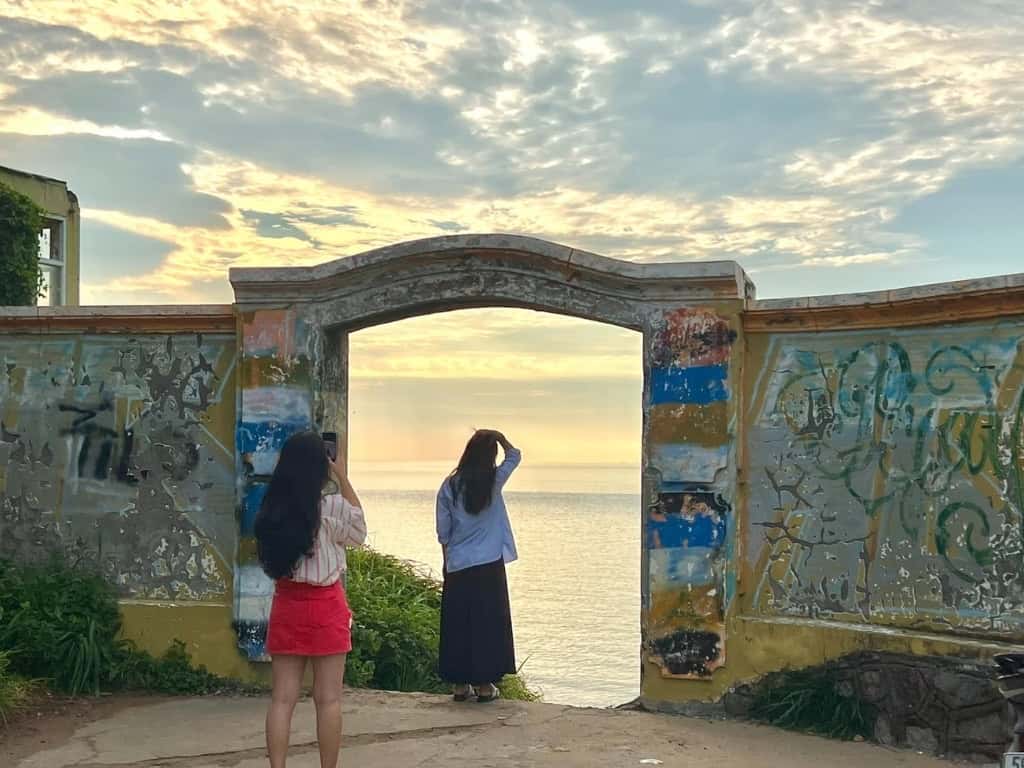 Với bức tường cũ được sơn màu vàng rực rỡ và cánh cổng bỏ ngỏ, nơi đây đem đến cho du khách cảm giác như đang bước chân vào một thế giới khác. Khi vượt qua cánh cổng này, xuất hiện trước mắt bạn là một bức tranh sơn thủy hữu tình độc đáo, với biển vây quanh núi, núi ôm lấy biển, tạo nên khung cảnh hùng vĩ và yên bình đến lạ thường.