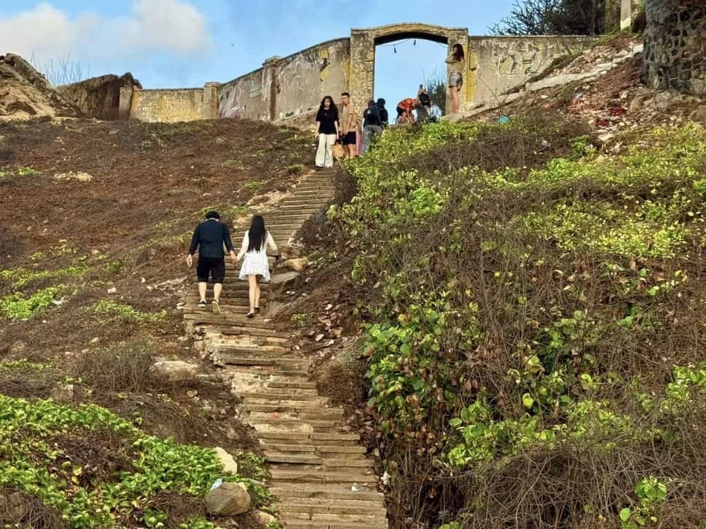 Cổng Trời chính là “thiên đường” sống ảo dành cho những ai yêu thích check-in và chụp ảnh nghệ thuật độc đáo. Sau bức tường cũ kỹ của căn nhà hoang, bạn sẽ bước qua cánh cổng mở ra một thế giới biển cả bao la, nơi có biển xanh ngát, bầu trời trong xanh cùng mây trắng bay lơ lửng. Những bậc thang đá rêu phong nối tiếp nhau, với cây cỏ bao quanh tạo nên một khung cảnh hoang sơ đầy quyến rũ.