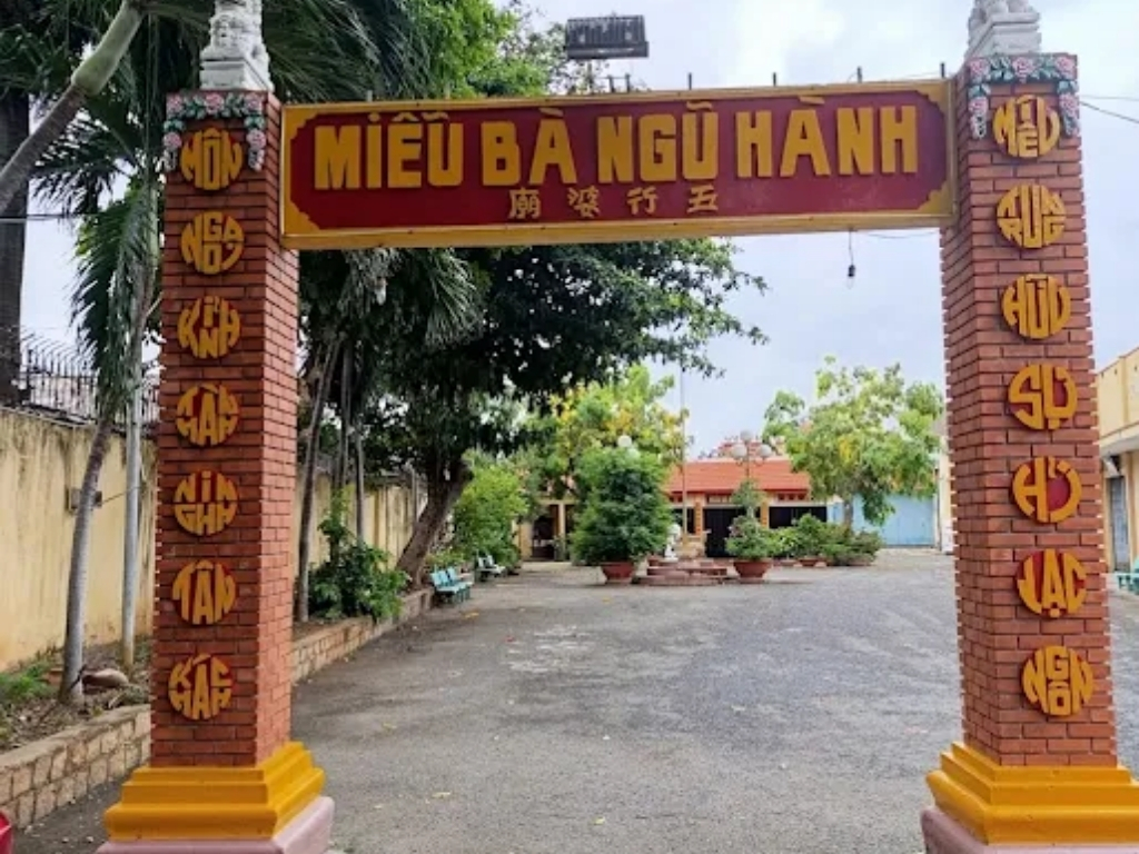 Bước vào Cổng khu di tích, du khách sẽ nhìn thấy Miếu Bà Ngũ Hành nằm bên tay trái. Miếu được xây dựng vào cuối thế kỷ XIX, thờ năm vị nữ thần: Kim, Mộc, Thủy, Hỏa, Thổ và hai vị hộ quốc được vua thăng Thượng Đẳng Thần là bà Thiên Y A Na và Thủy Long Thần Nữ.
