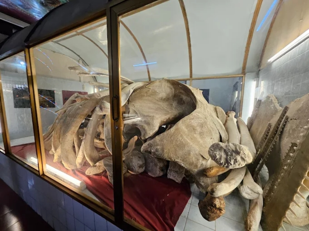 Phần bộ xương Cá Ông khổng lồ được trưng bày trang trọng trong Lăng (Ảnh: Sưu tầm)