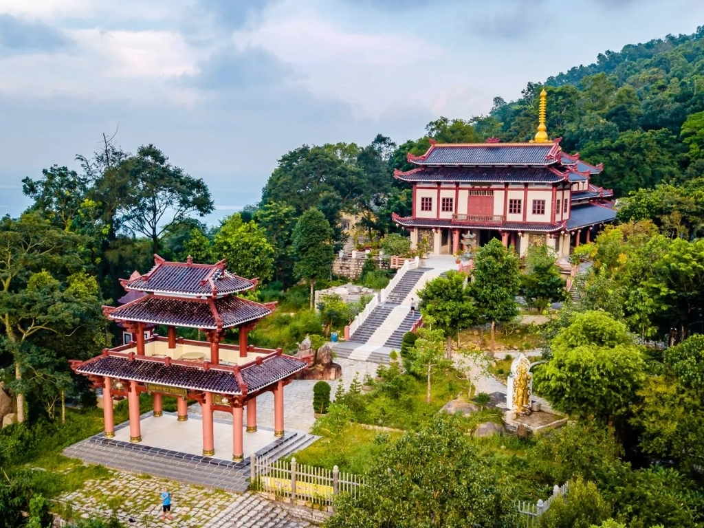 Tượng Phật Quan Âm: Tượng cao 10 mét trên đỉnh núi, thu hút du khách đến chiêm bái.