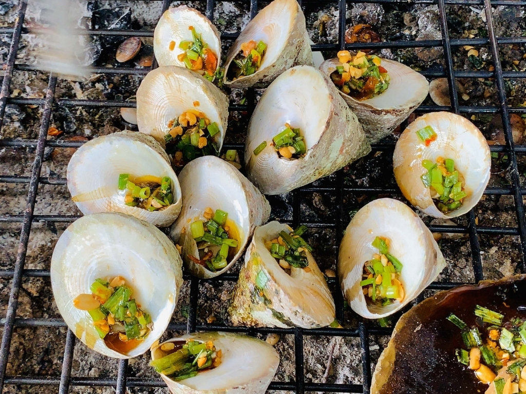 Ốc Vú Nàng là một đặc sản độc đáo của Côn Đảo, với vỏ ngoài màu xám đen, hình chóp, và thịt ốc bóng bẩy như xà cừ. Loại ốc này có thể chế biến thành nhiều món ngon như luộc, nướng hay làm gỏi. Khi thưởng thức ốc luộc, thực khách sẽ cảm nhận được hương vị tươi ngon và có thể ăn kèm với muối tiêu chanh để tăng thêm phần đậm đà.