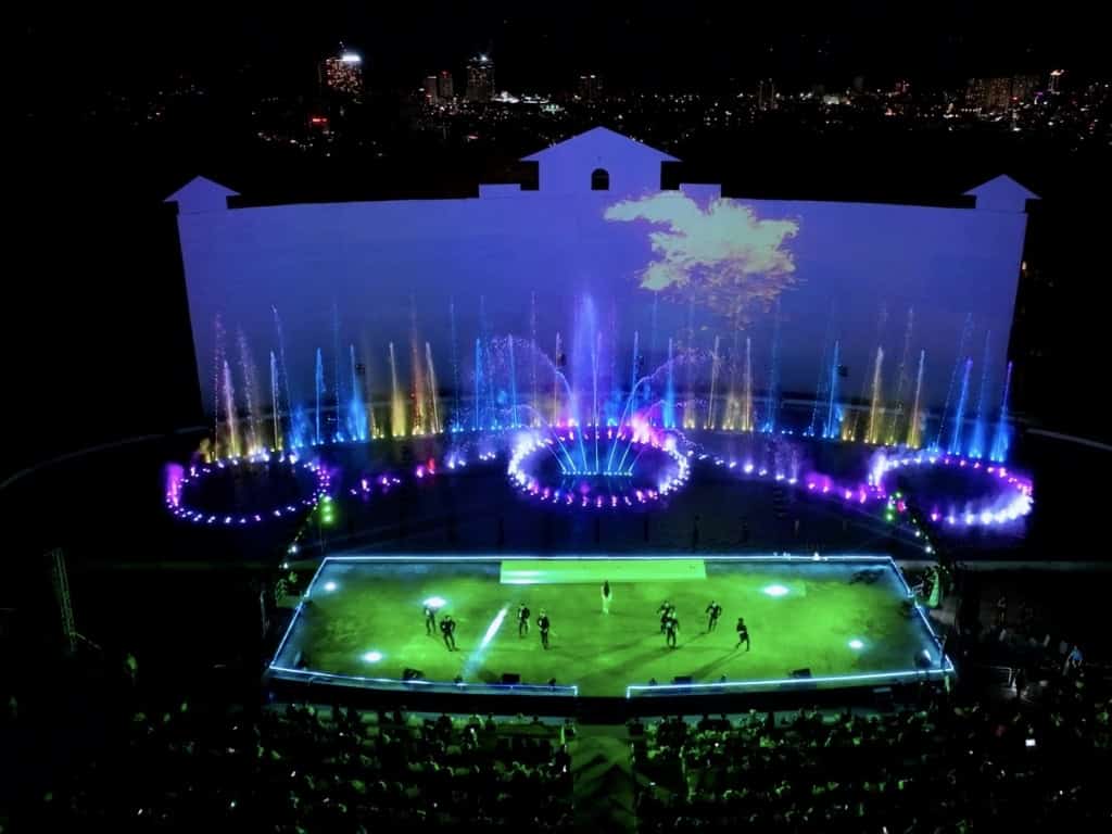 Hồ Mây Grand Show là một chương trình nhạc nước hoành tráng, sử dụng công nghệ laser 3D và mapping 5D, mang đến cho du khách một trải nghiệm giải trí tuyệt vời. Âm thanh sống động, ánh sáng rực rỡ, hiệu ứng khói lửa hòa quyện, tạo nên một màn trình diễn kích thích mọi giác quan.