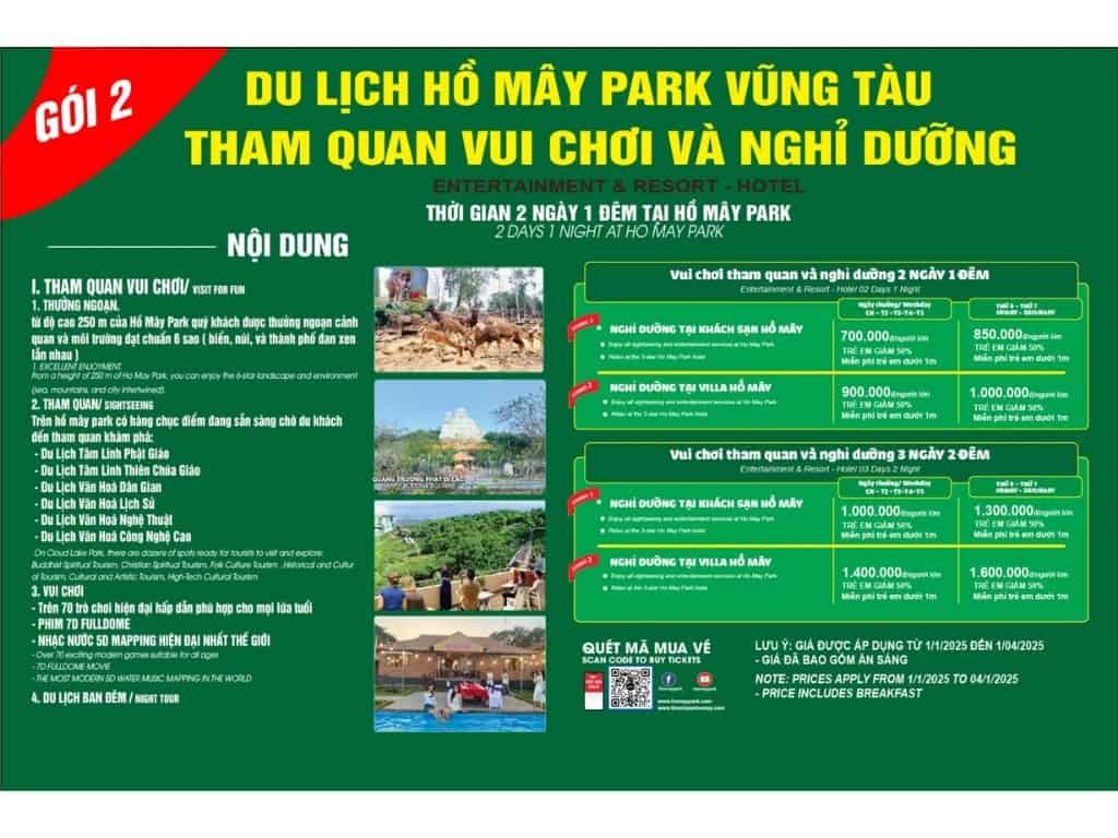 Bảng giá dịch vụ đoàn tại Hồ Mây Park Vũng Tàu