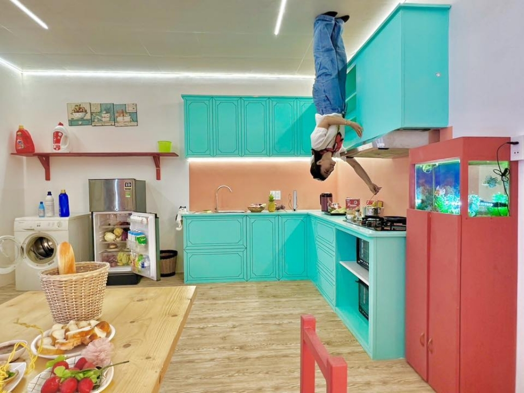 Điểm đặc biệt của quán là khu chụp hình với 7 căn phòng được thiết kế theo phong cách đảo ngược, tạo ra những hiệu ứng thị giác độc đáo cho du khách. Mỗi phòng có một kiến trúc riêng biệt, mang lại cho khách tham quan những góc ảnh cực kỳ ấn tượng. Quán cà phê Nhà Úp Ngược chắc chắn là địa điểm “sống ảo” lý tưởng cho những ai yêu thích chụp ảnh và tìm kiếm những trải nghiệm thú vị.
