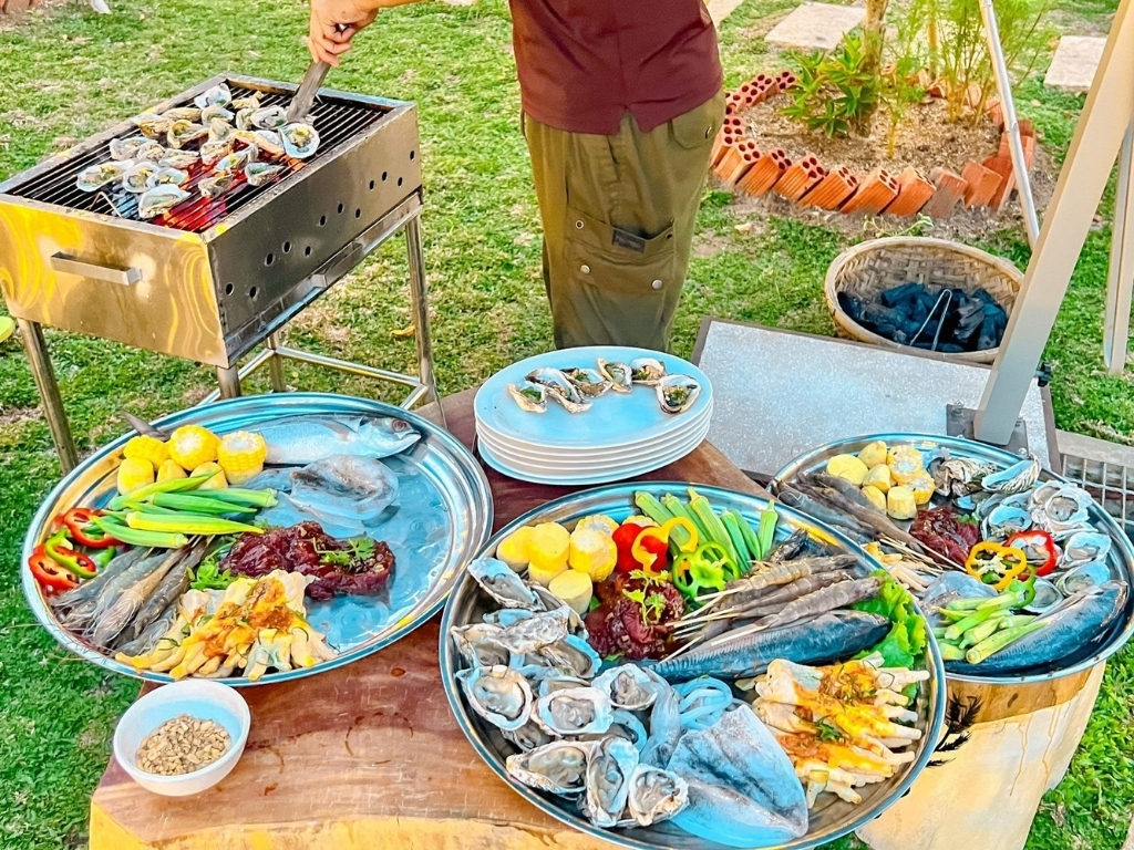 Một trải nghiệm không thể thiếu tại Làng Chí Linh là tổ chức BBQ ngoài trời. Bạn có thể cùng bạn bè, gia đình quây quần quanh bếp nướng, thưởng thức những món ăn như thịt nướng, rau củ nướng và các món hải sản tươi sống. Không khí thoáng đãng và vị ngon của món ăn sẽ khiến bạn cảm thấy thật thư giãn và vui vẻ.