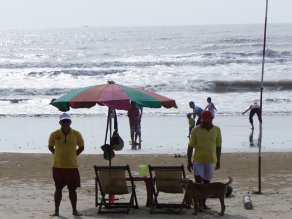 Sóng to, đập mạnh vào bờ; cờ đỏ cắm hai đầu bãi: thường có 1 cờ đỏ ở hai vị trí, cảnh báo cấm tắm biển khi có gió giật.