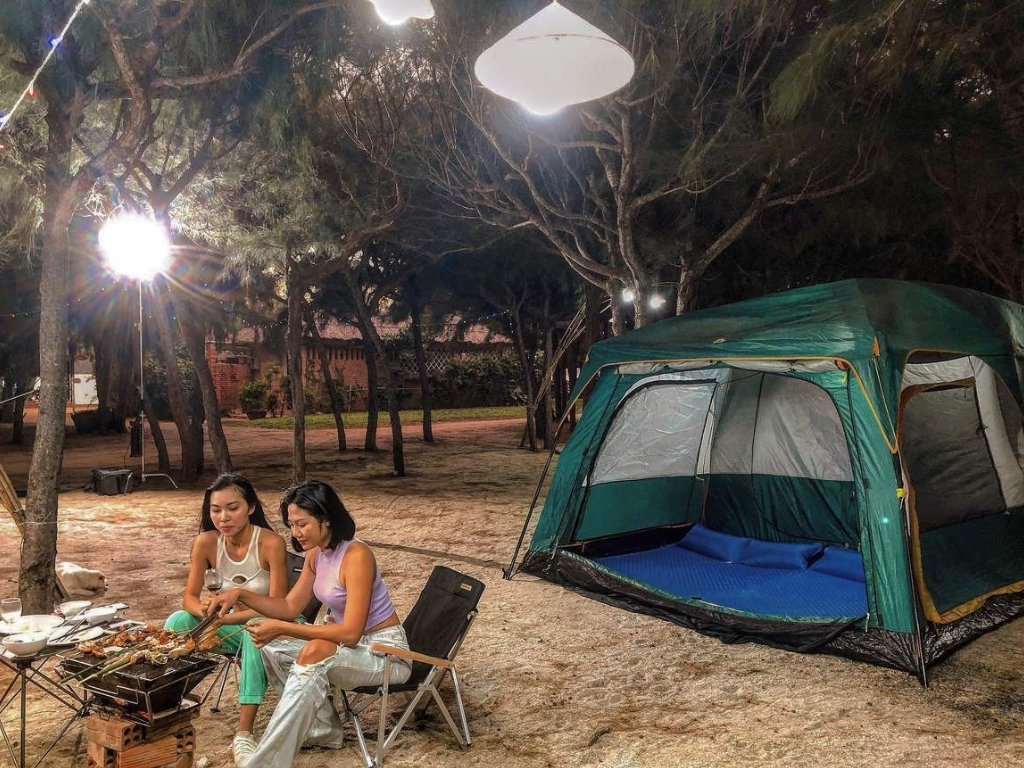 Khu cắm trại rộng rãi, tiện nghi ngay sát biển