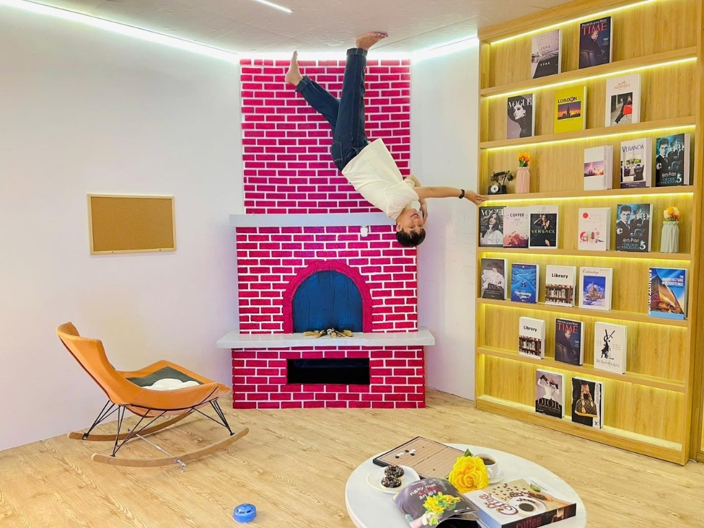 Nhà Úp Ngược gồm 7 phòng studio được thiết kế với nội thất lạ mắt. Mỗi phòng được trang trí theo kiểu ngược, từ bàn ghế, giường ngủ, đến các đồ trang trí, tất cả đều được treo trên trần nhà, tạo cảm giác như bạn đang bước đi trên trần nhà. Không gian này đặc biệt phù hợp cho những bức ảnh “lầy lội”, hài hước và độc đáo, khiến mọi du khách không thể rời mắt. Đây cũng chính là lý do mà nơi này trở thành điểm check-in nổi bật của giới trẻ.